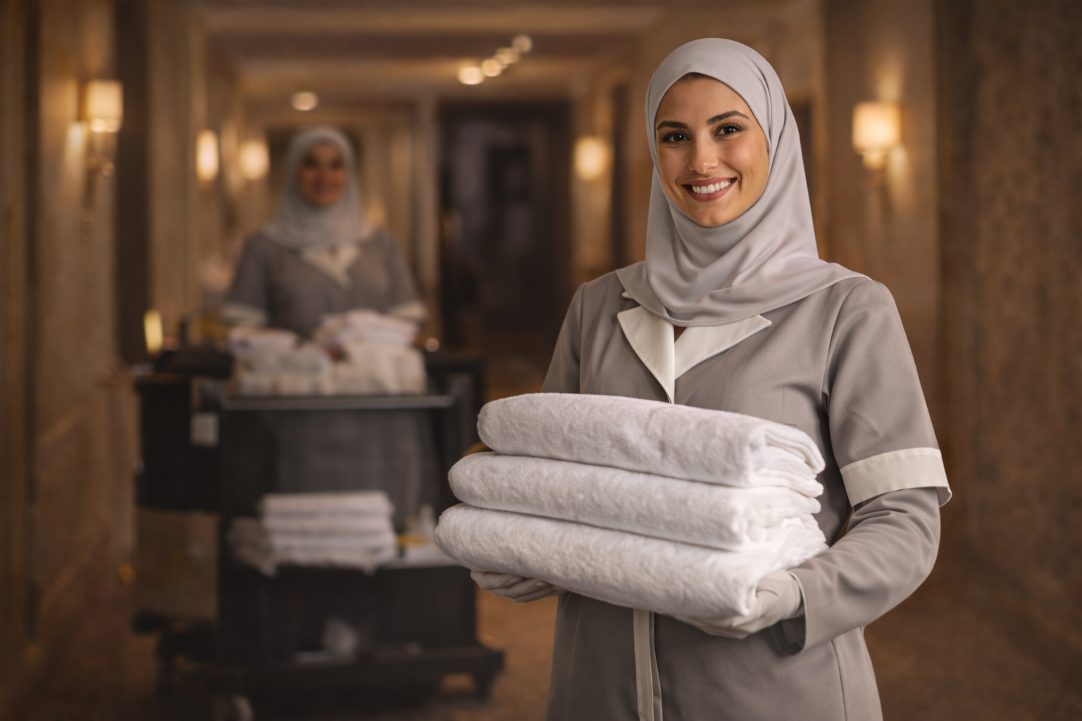 نوفّر حلول زيّ موحد متكاملة لجميع أقسام الفندق، بما يضمن توحيد الهوية البصرية والحفاظ على مظهر راقٍ ومتناسق يعكس مستوى الضيافة الرفيع الذي تقدمونه